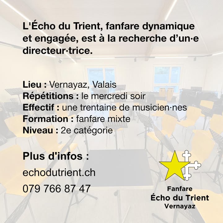 Le Championnat valaisan des solistes juniors, des quatuors et des ensembles (CVSJQ) fête sa 30e édition. Il aura lieu le 7 décembre prochain à Grône et réunira plus de 350 jeunes musiciens de cuivre (de moins de 20 ans) et 12 petits ensembles et quatuors (pas de limite d’âge). La ou le soliste victorieux (vainqueur de la finale) gagnera une récompense hors norme, soit une nouvelle composition solistique dédiée qu’écrira Bertrand Moren.
